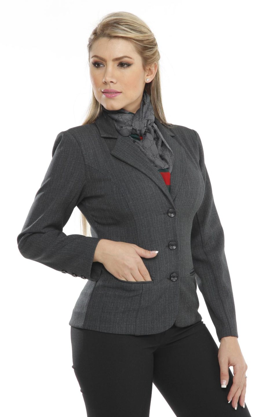 Blazer gris texturizado, corte sastre con moño discreto, diseño que combina elegancia clásica con un toque de sofisticación contemporánea.
